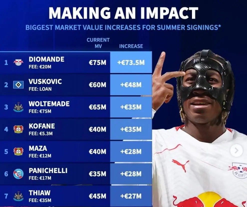 回顾扬迪奥曼德的职业生涯,可谓一部励志的故事。2024年初,年仅17岁的迪奥曼德还在美利坚土地踢着一毛钱转播费都没有的半职业联赛。从科特迪瓦出生的他,幼年随家庭移居美国,那时的他不过是佛罗里达州DME学院一个没有任何职业合同的边路突击手。再往前,甚至有过一次被苏超流浪者试训拒绝的经历。但命运的齿轮偶尔也得靠谱一回。2025年1月,西甲保级队莱加内斯发现了这块璞玉。尽管半个赛季后莱加内斯降级,但迪奥曼德凭借10场2球1助的闪亮演出,成功引起了RB莱比锡那双毒辣的挖掘眼睛。去年夏天莱比锡砸下2000万欧元,引进扬迪奥曼德,并与签下一份直至2030年的长约。而当时,他的德转身价不过150万欧元。
